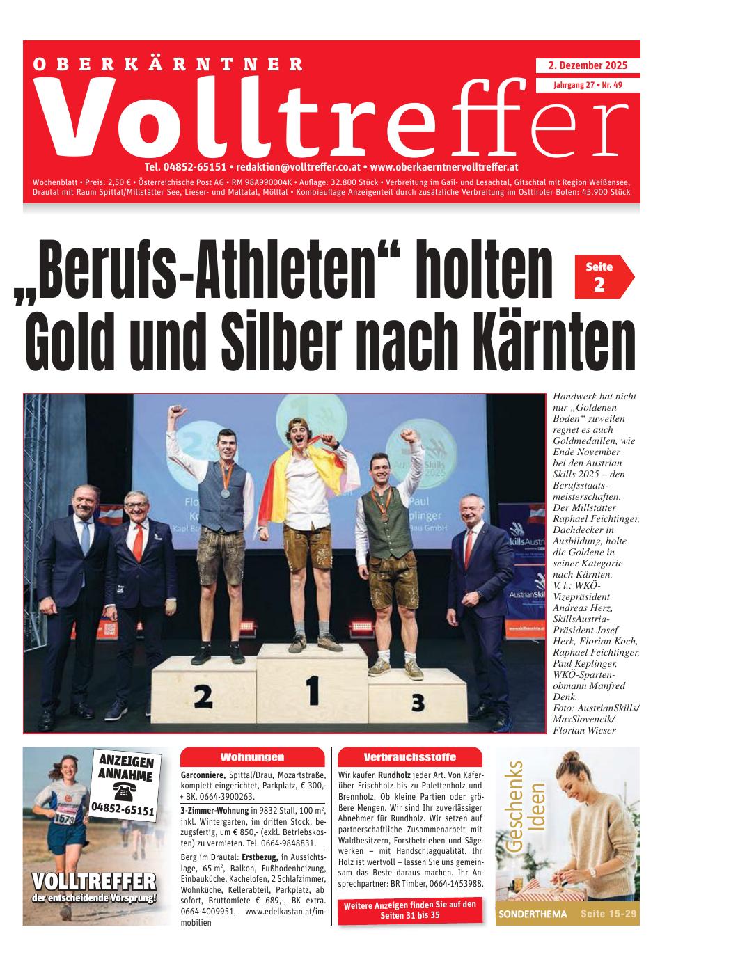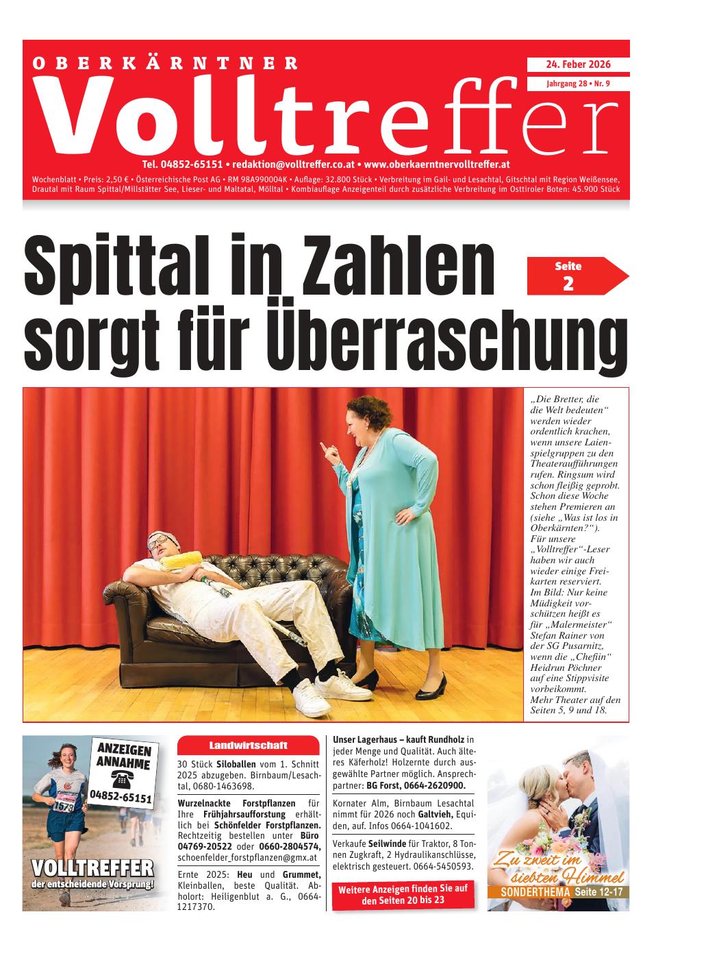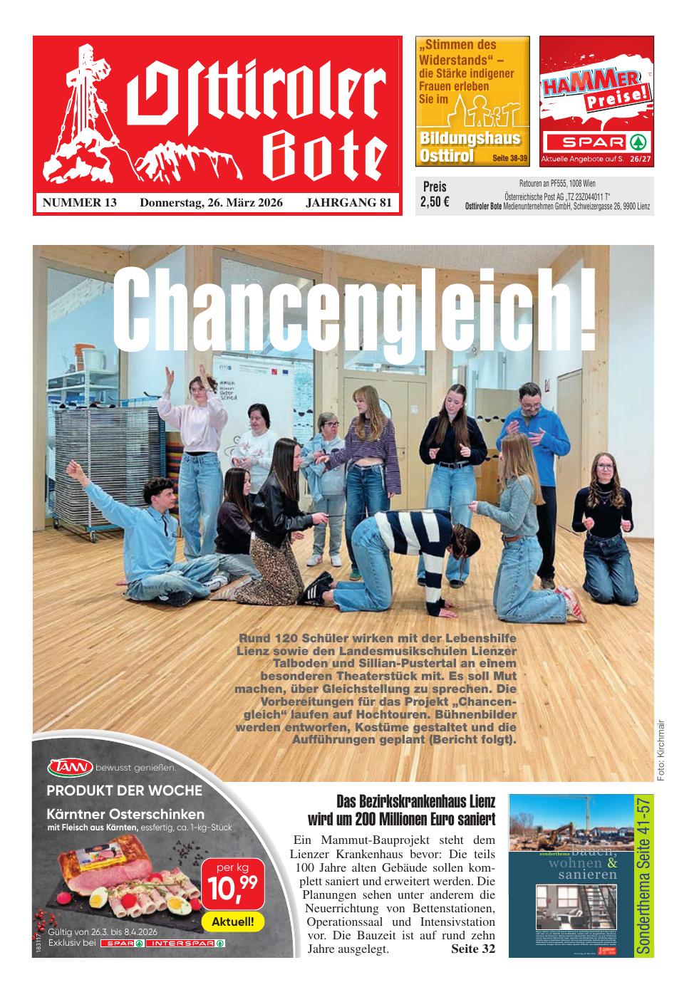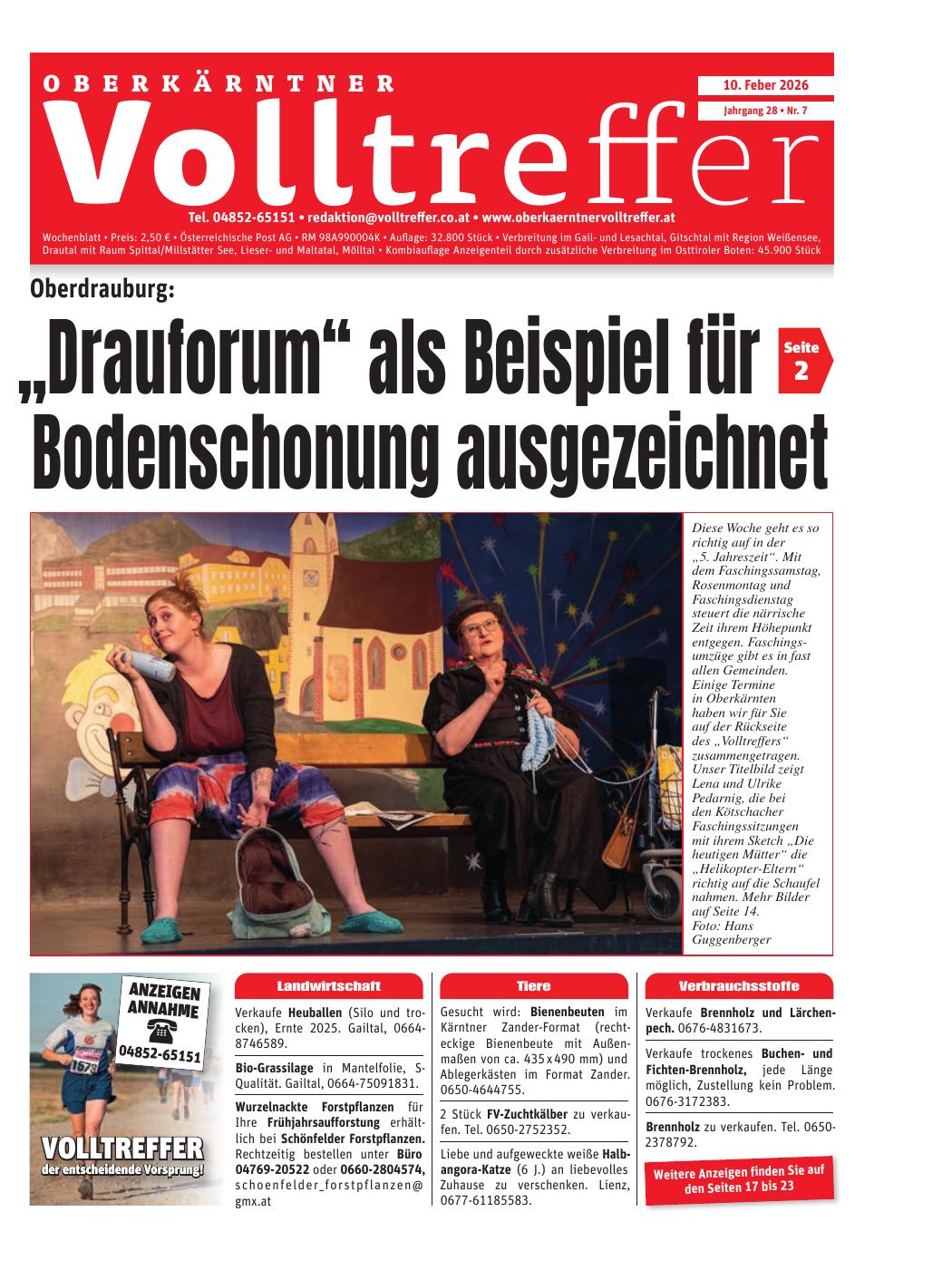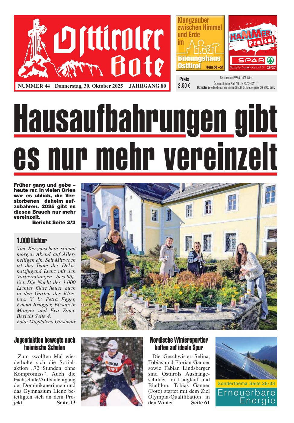 Erleben Sie die neuesten Nachrichten und Geschichten aus der Region – direkt im digitalen Zeitungsformat! Hier können Sie die aktuellsten Ausgaben von regionalen Zeitungen wie dem Osttiroler Bote und dem Oberkärntner Volltreffer online lesen und sich umfassend über das Geschehen vor Ort informieren. Bleiben Sie nah dran an den Themen, die unsere Region bewegen.