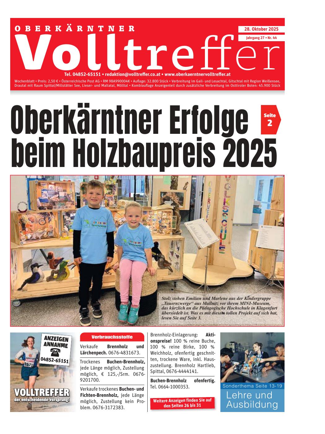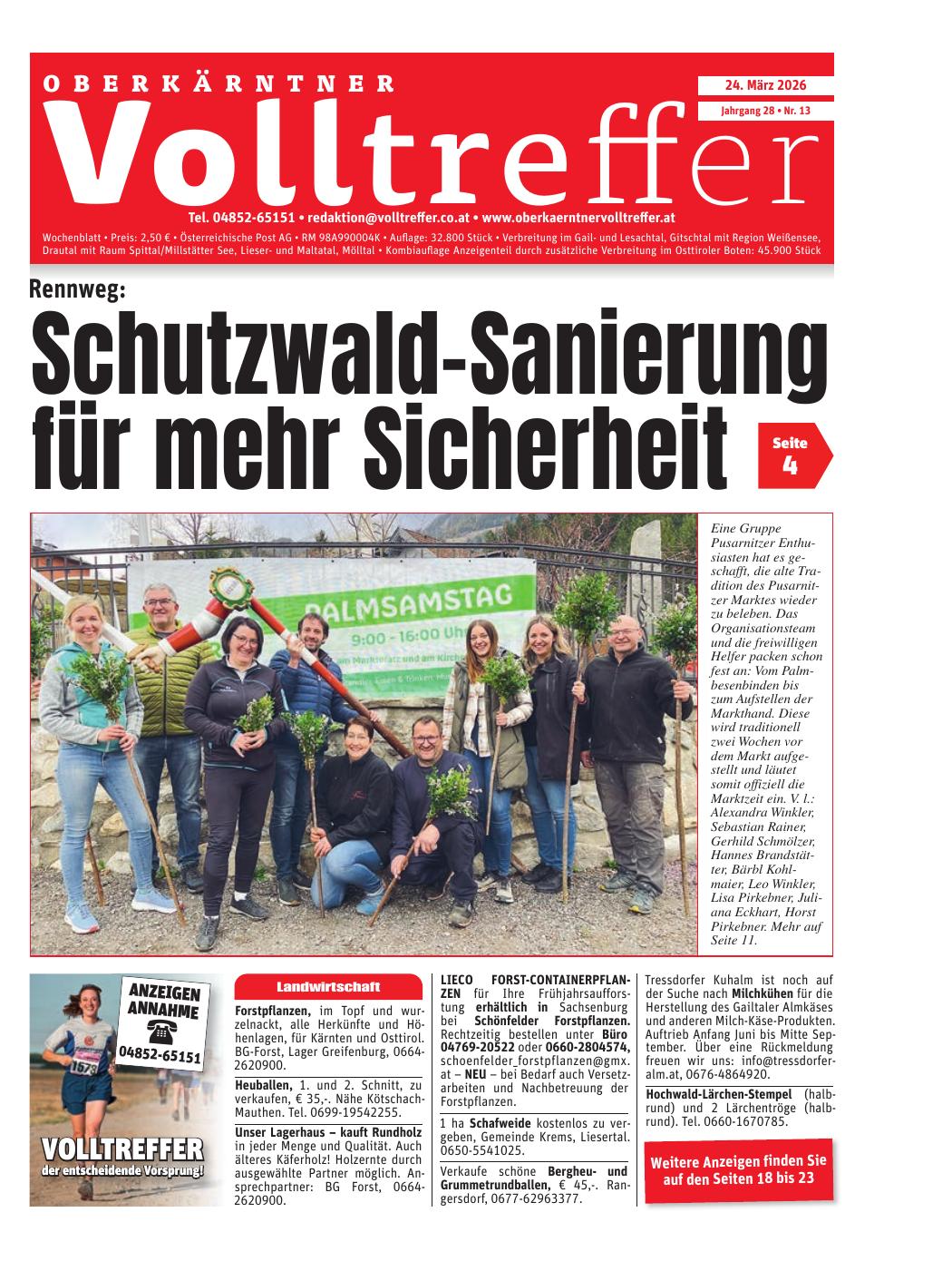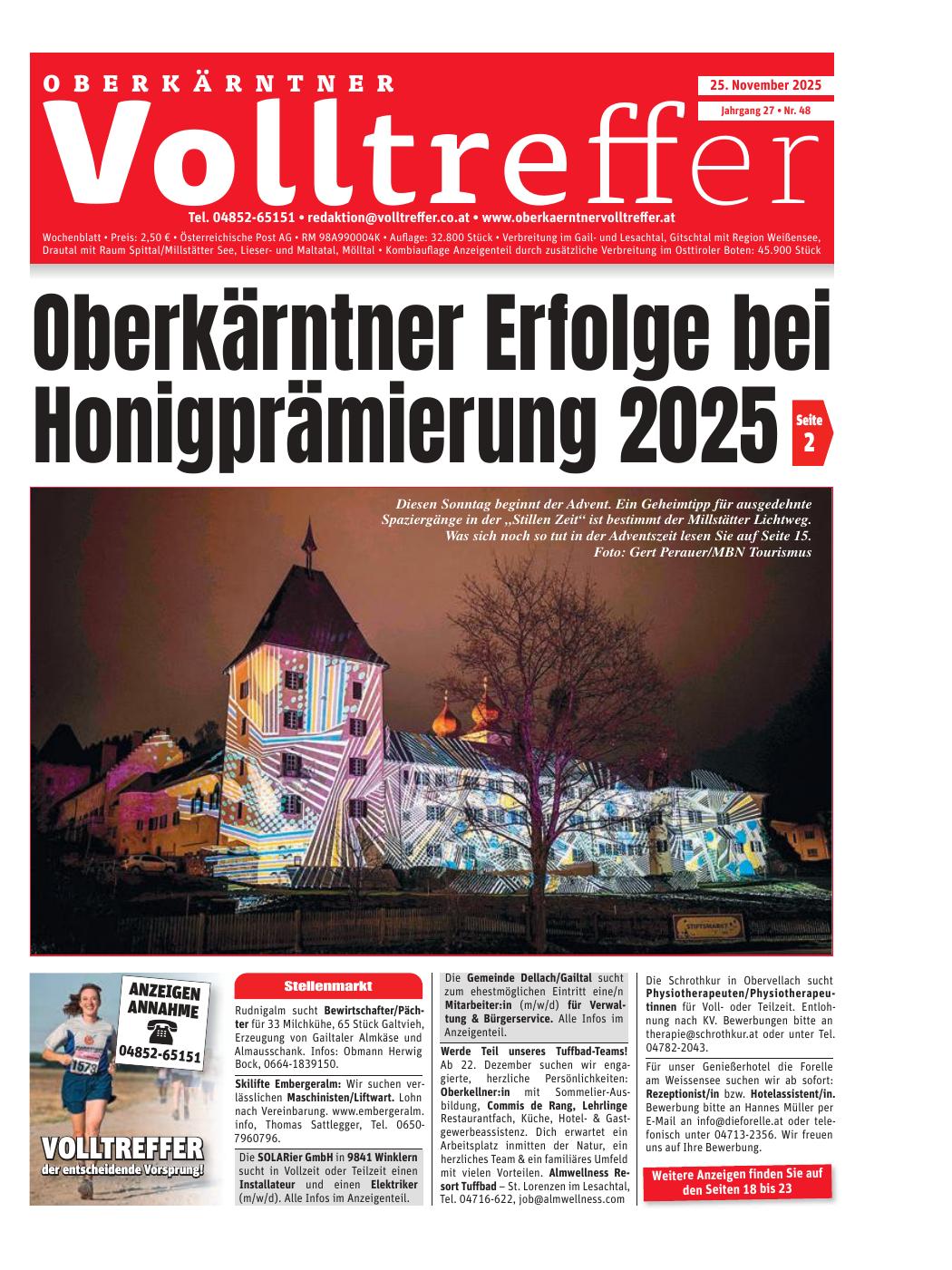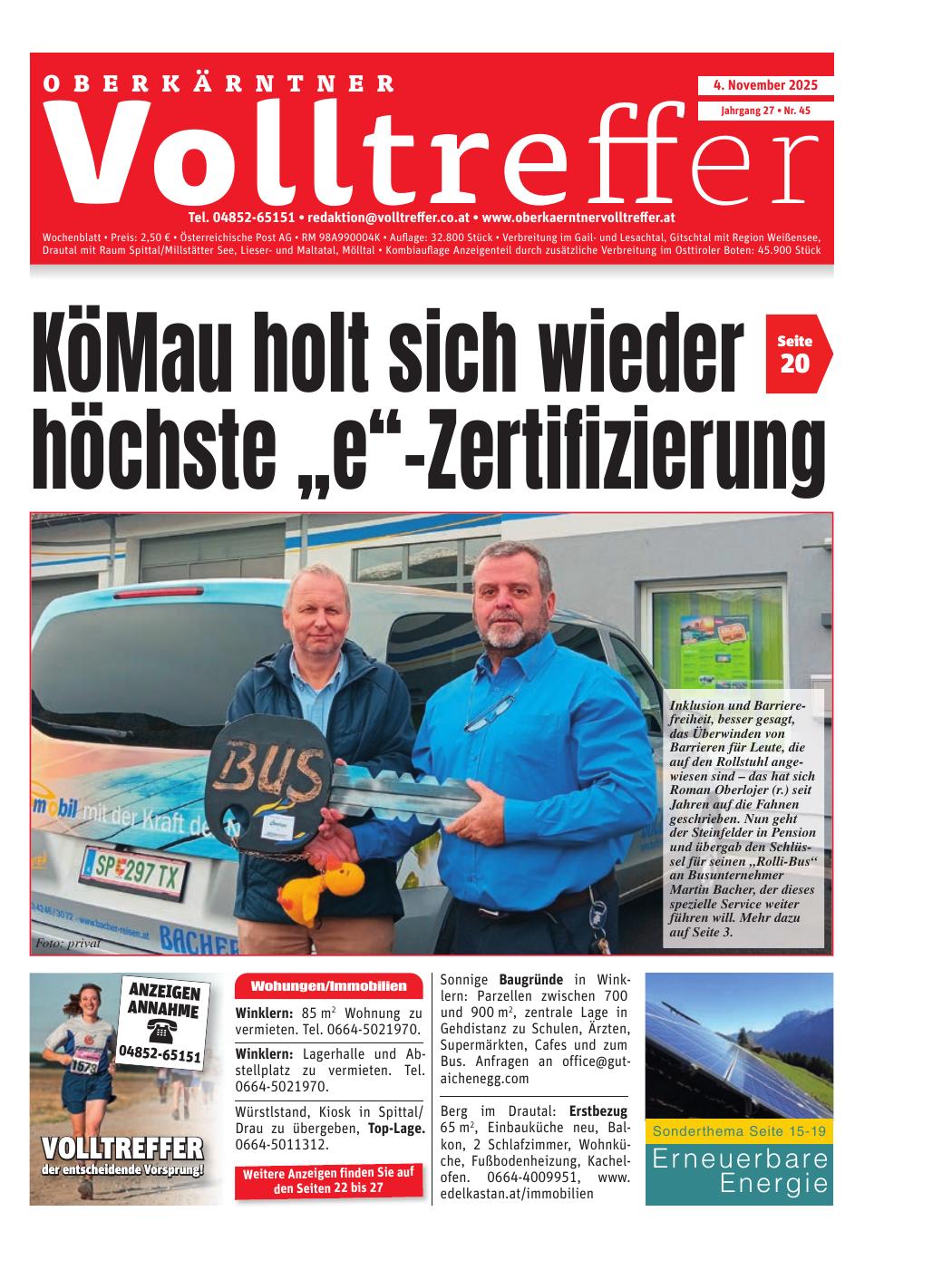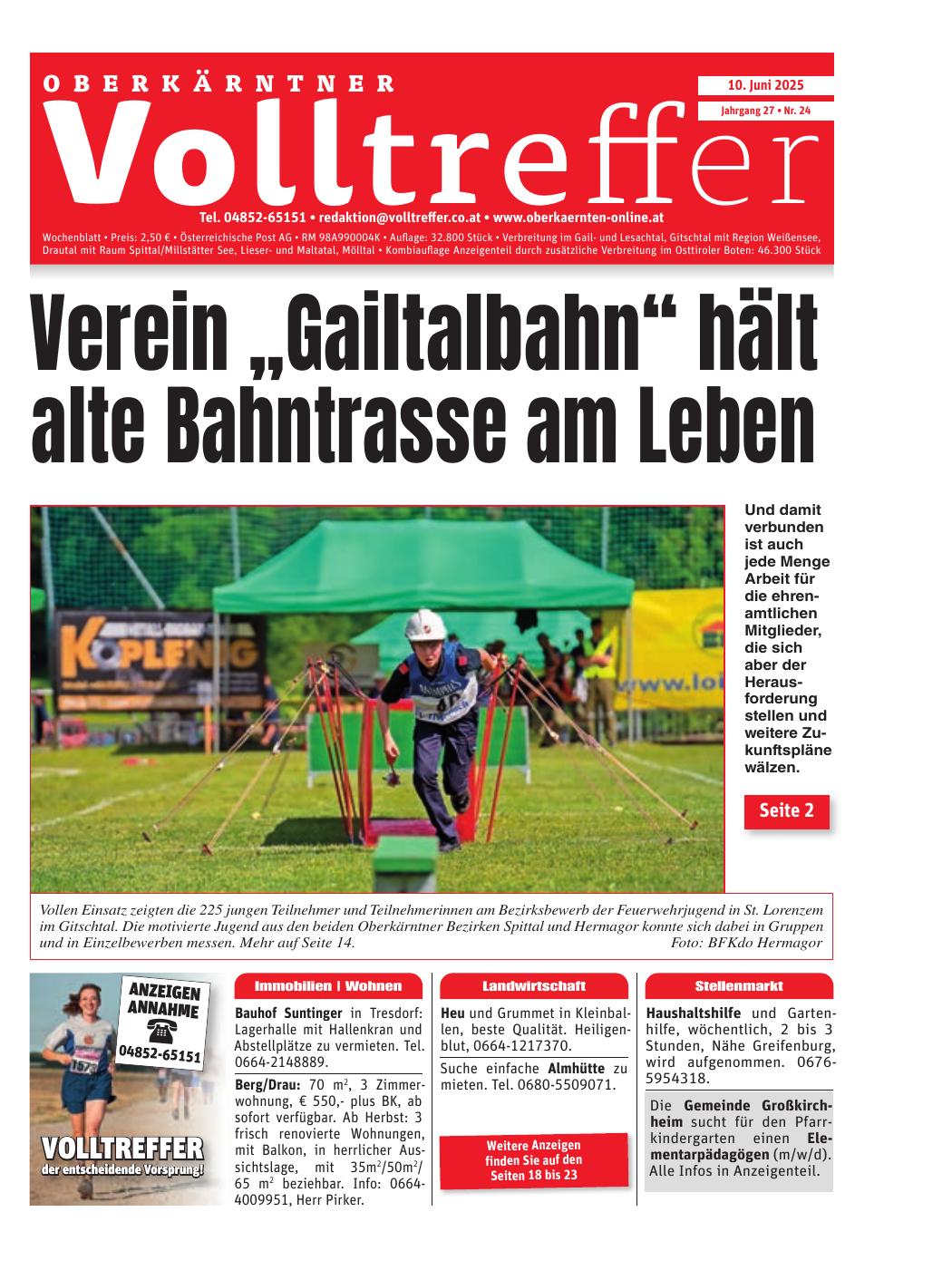 Erleben Sie die neuesten Nachrichten und Geschichten aus der Region – direkt im digitalen Zeitungsformat! Hier können Sie die aktuellsten Ausgaben von regionalen Zeitungen wie dem Osttiroler Bote und dem Oberkärntner Volltreffer online lesen und sich umfassend über das Geschehen vor Ort informieren. Bleiben Sie nah dran an den Themen, die unsere Region bewegen.