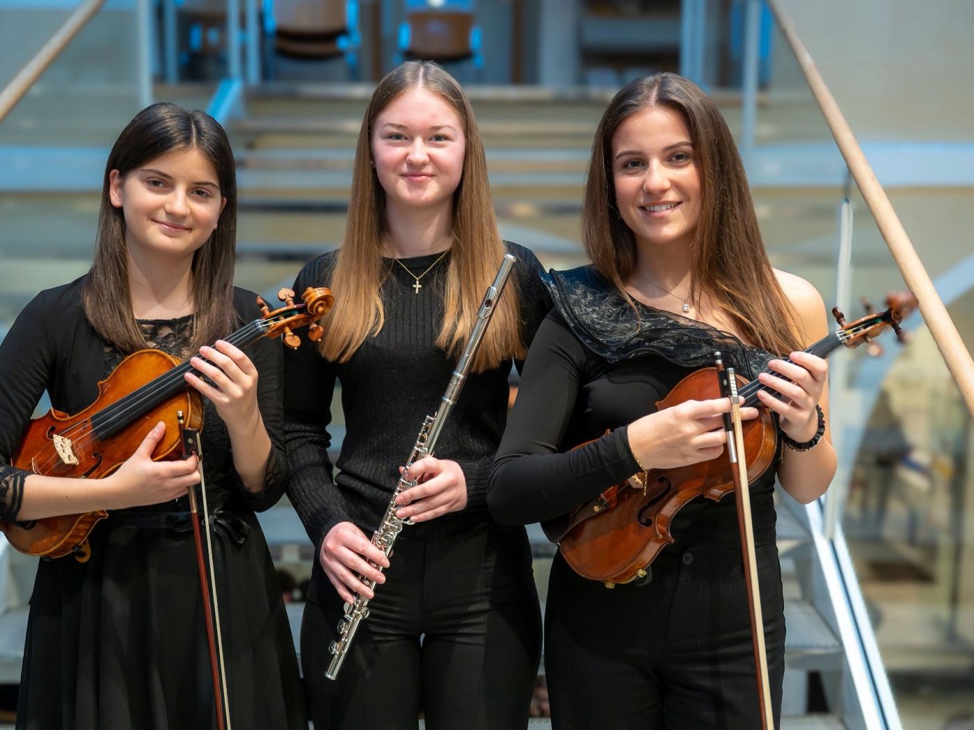 Sofia Ratschl und Letizia Lamb werden auf der Violine ihre Künste zum Besten geben, Sarah Winkler auf der Querflöte. Der Erlös der Veranstaltung kommt den Musikschülerinnen und ihrer Ausbildung zugute.